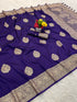 Energetic Royal Purple Pure Zari Weaving Banarasi Silk Saree With Ailurophile Blouse Piece