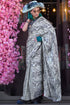 Engaging Grey Digital Printed Satin Silk Saree With Magnetic Blouse Piece