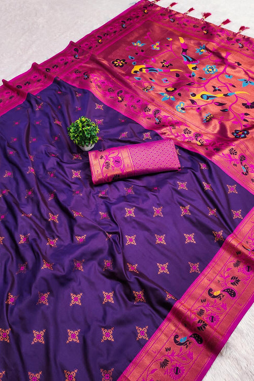 Engrossing Purple Paithani Silk Saree With Magnificat Blouse Piece