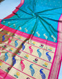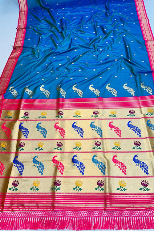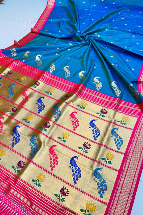 Ephemeral Blue Paithani Silk Saree With Tantalizing Blouse Piece