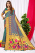 Epiphany Grey Paithani Silk Saree With Jazzy Blouse Piece