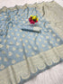 Evanescent Grey Soft Silk Saree With Designer Blouse Piece