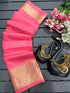 Exquisite Pink Organza Silk Saree With Cynosure Blouse Piece