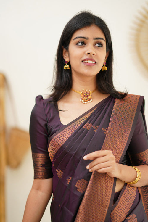 Exquisite Purple Soft Silk Saree With Adoring Blouse Piece
