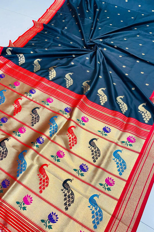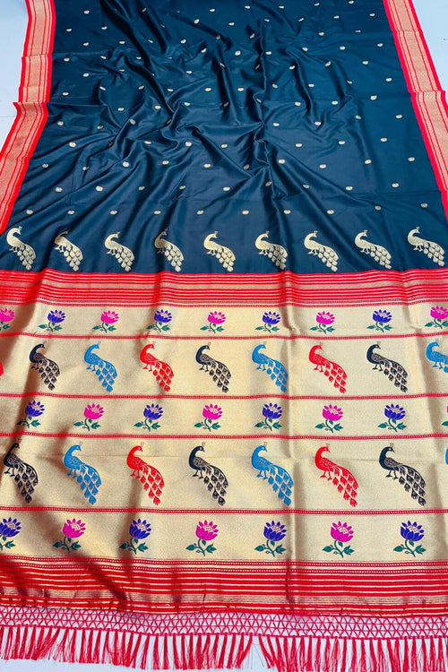 Fragrant Teal Blue Paithani Silk Saree With Chatoyant Blouse Piece
