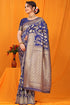 Gleaming Navy Blue Kanjivaram Silk With Scintilla Blouse Piece