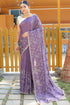 Gratifying Lavender Embroidery Work Soft Silk Saree With Impressive Blouse Piece