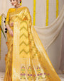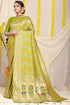 Improbable Mehndi Soft Banarasi Silk Saree With Beautiful Blouse Piece