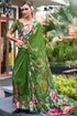Intricate Green Digital Printed Georgette Saree With Charming Blouse Piece