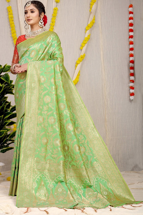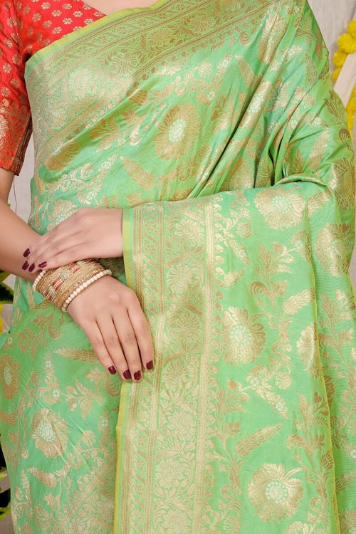 Lovely Parrot Soft Banarasi Silk Saree With Nemesis Blouse Piece