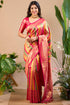 Elevate your style with the Dalliance Red Soft Banarasi Silk Saree. Made from high-quality Banarasi silk, this saree exudes sophistication and class. The panoply blouse piece adds a touch of glamour, making it a versatile and stylish addition to your wardrobe.