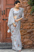 Magnificat Grey Embroidery Work Chiffon Silk Saree With Piquant Blouse Piece
