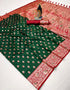 Opulent Dark Green Soft Banarasi Silk Saree With Prettiest Blouse Piece