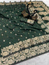 Petrichor Dark Green Soft Banarasi Silk Saree With Ideal Blouse Piece