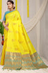 Phenomenal Lemon Banarasi Silk Saree With Engrossing Blouse Piece