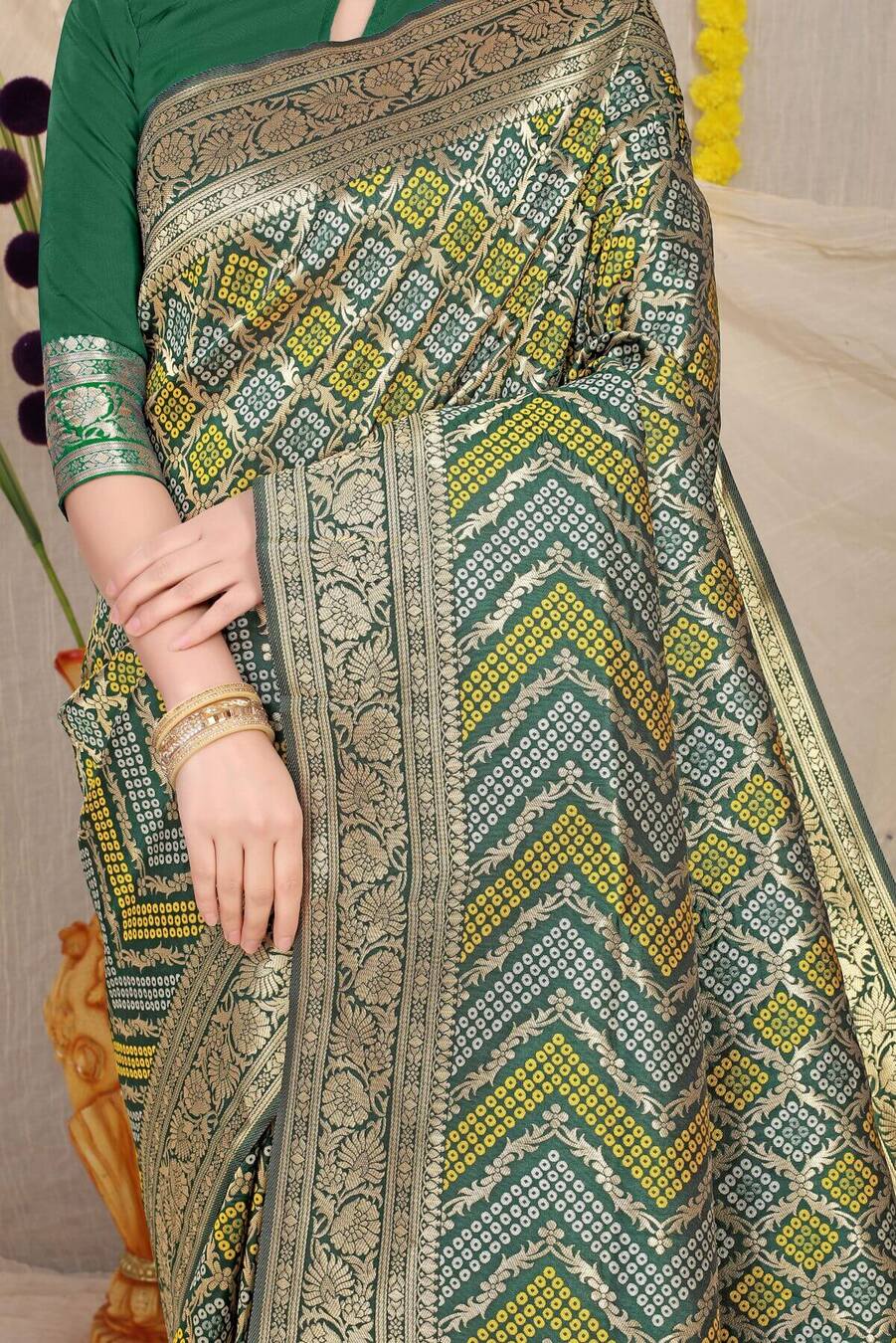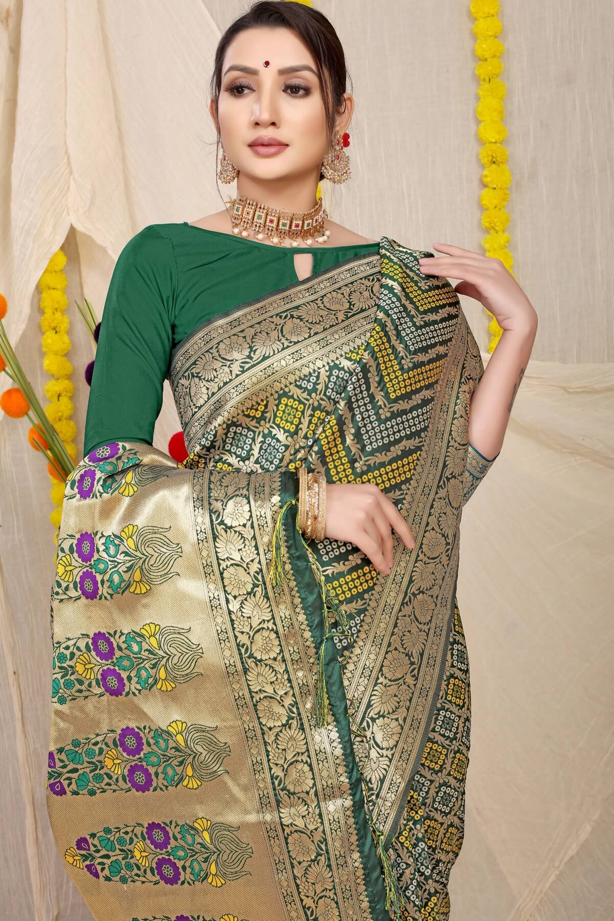 Propinquity Dark Green Soft Banarasi Silk Saree With Beautiful Blouse Piece