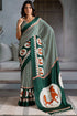 Resplendent Dark Green Ajrakh Printed Satin Silk Saree With Lassitude Blouse Piece