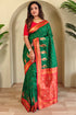 Rhapsody Green Soft Banarasi Silk Saree With Ethereal Blouse Piece