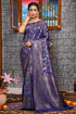 Seraglio Navy Blue Kanjivaram Silk Saree With Imaginative Blouse Piece