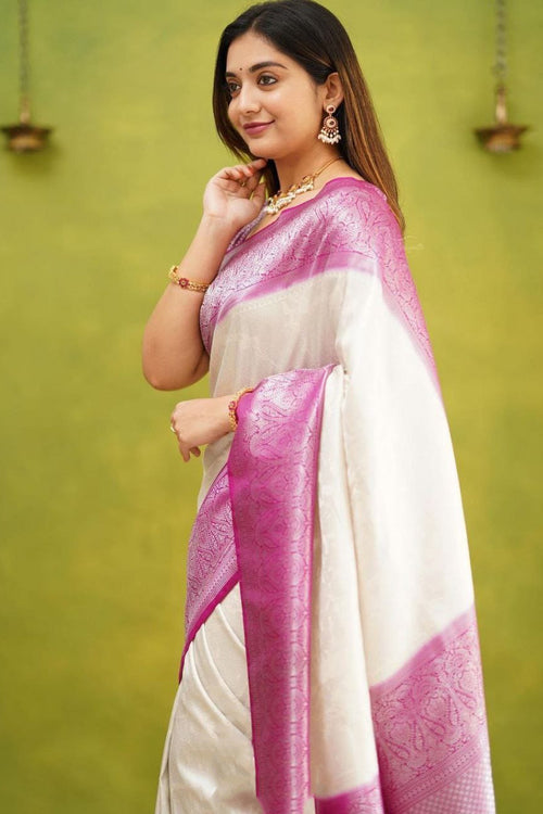 Serendipity White Soft Silk Saree With Engaging Blouse Piece