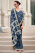 Smashing Navy Blue Printed Mul Cotton Saree With Enchanting Blouse Piece
