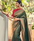 Snazzy Dark Green Soft Silk Saree With Woebegone Blouse Piece