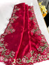 Staring Dark Pink Embroidery Work Tussar Silk Saree With Glowing Blouse Piece