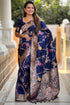 Stunner Navy Blue Soft Banarasi Silk Saree With Comely Blouse Piece