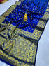 Symmetrical Navy Blue Soft Banarasi Silk Saree With Enchanting Blouse Piece