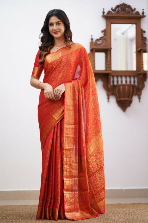 Traditional Red Soft Silk Saree With Fancifull Blouse Piece