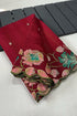 Unique Red Embroidery Work Tussar Silk Saree With Sizzling Blouse Piece