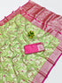 Vestigial Pista Pure Zari Weaving Banarasi Silk Saree With Beauteous Blouse Piece