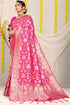 Wonderful Dark Pink Banarasi Silk Saree With Fairytale Blouse Piece